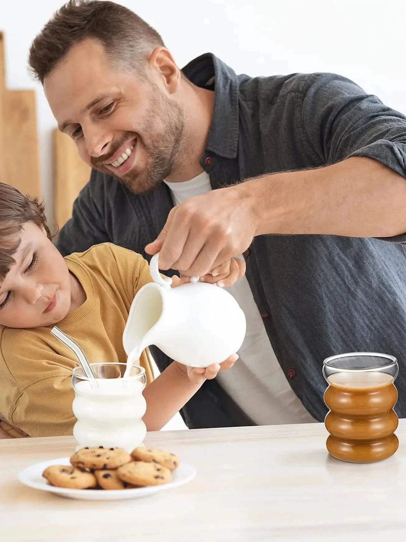 Wave Trinkgläser, wellenförmige Trinkgläser mit Strohhalm 2 - 4 Stück
